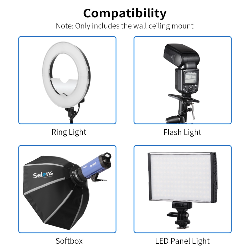 Selens Wall Ceiling Mount Lighting Wall Holder Baby Pin Wall Plate with 5/8" Stud Adapter for Photo Studio Speedlite Light Stand Bracket Accessories