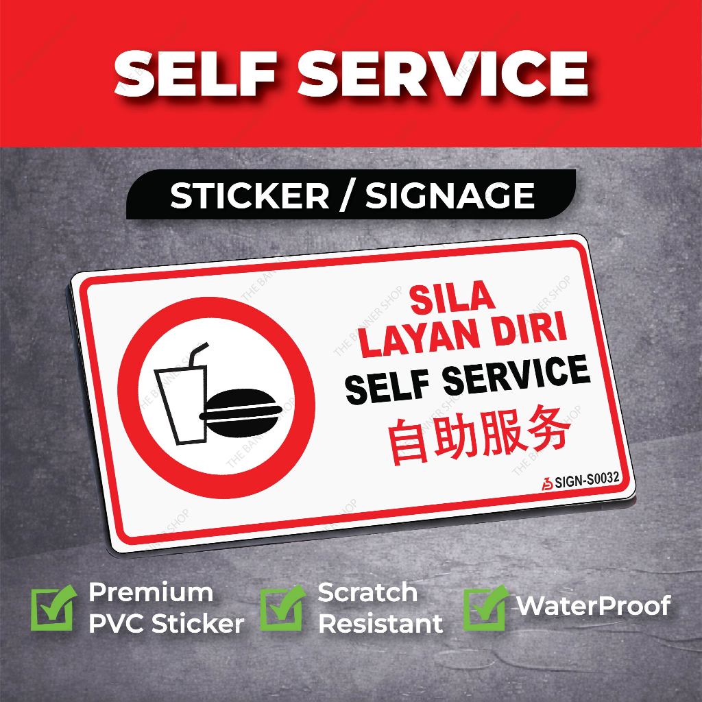 Self Service Signage PVC Sticker + Board