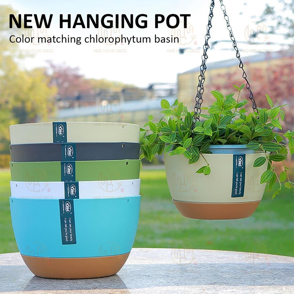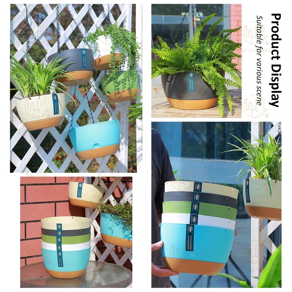 Self-Watering Hanging Pot Garden Planter Flower Pot Hanging Basket Pot With Removable Tray Pasu Bunga Gantung