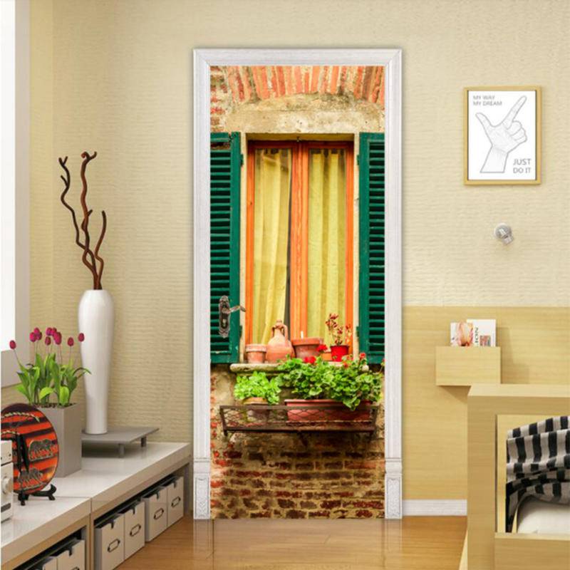 Self-adhesive building window scene art door sticker home decoration door cover wall stickers mural porch wallpaper poster