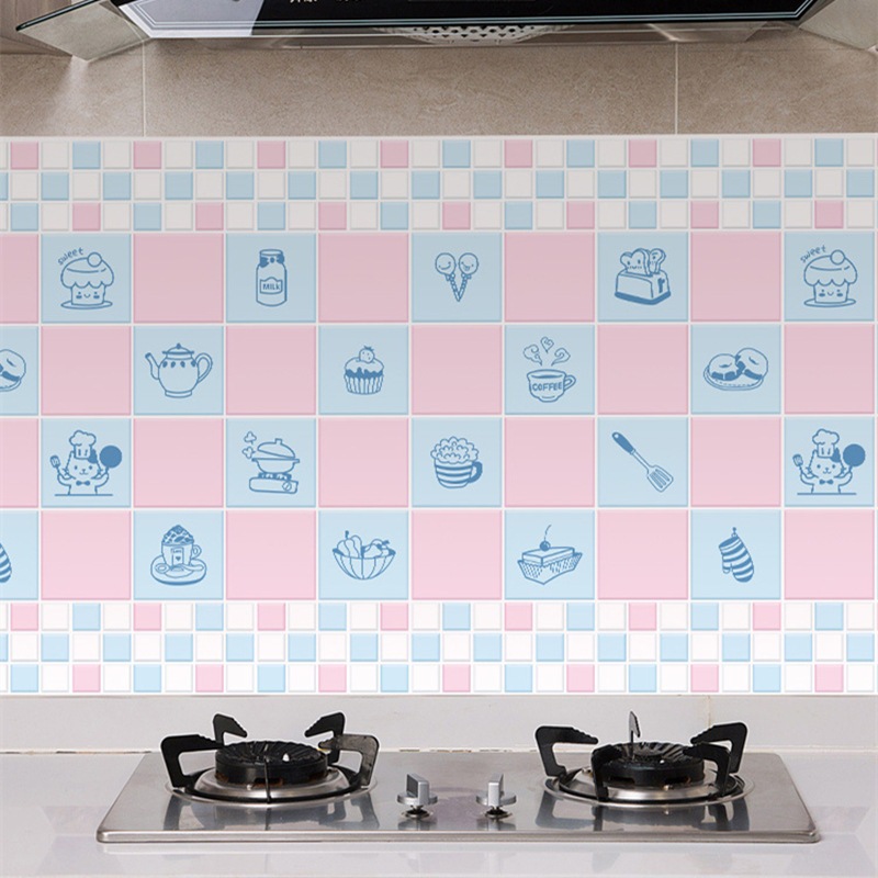 Self adhesive wallpaper dapur Waterproof kitchen stickers Oil-Proof Stickers Waterproof Cabinet Stove Fire-Resistant High Temperature Wall sticker
