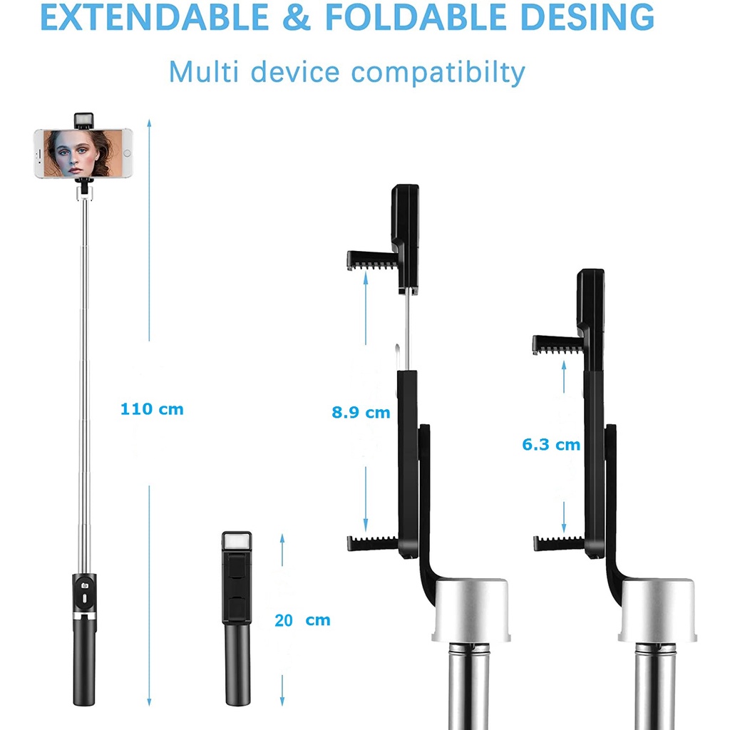 Selfie Stick w Fill Light Extendable Wireless Bluetooth Detachable Remote Control Tripod Monopod