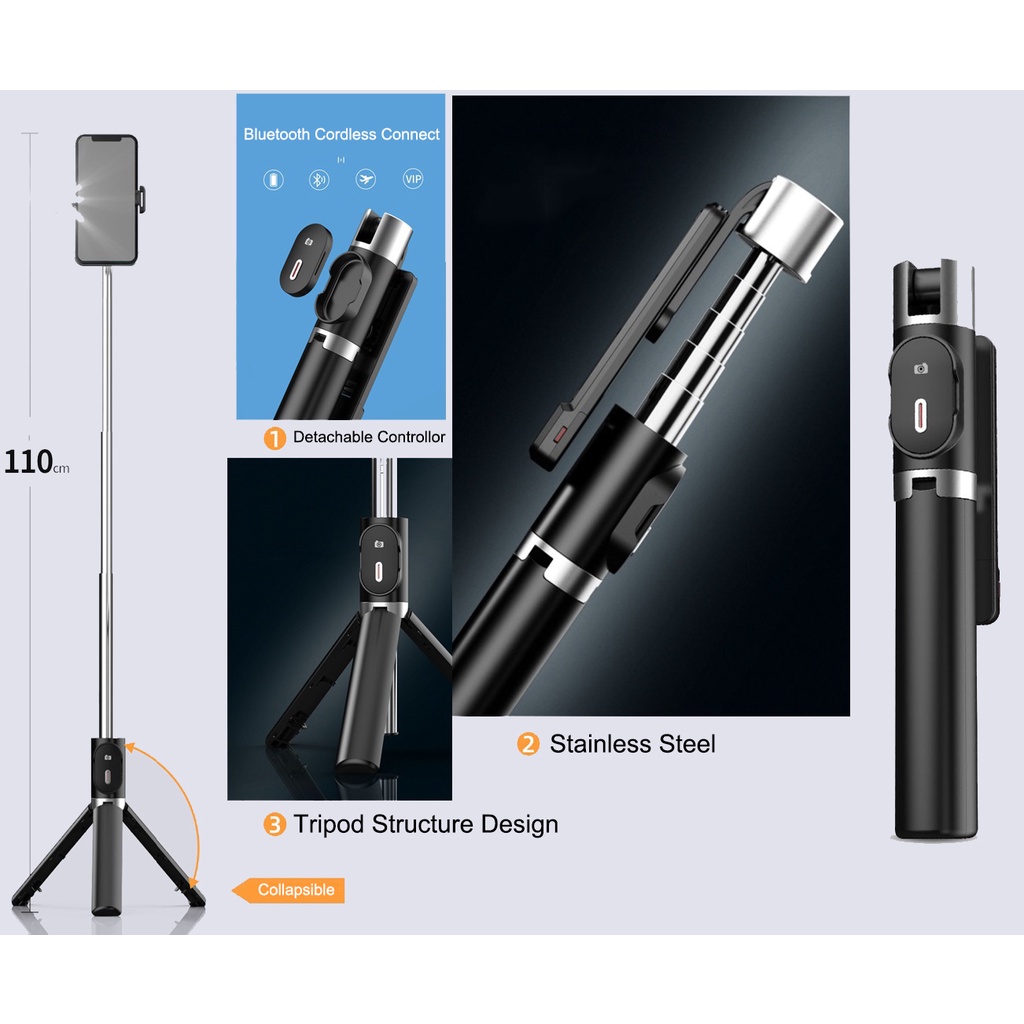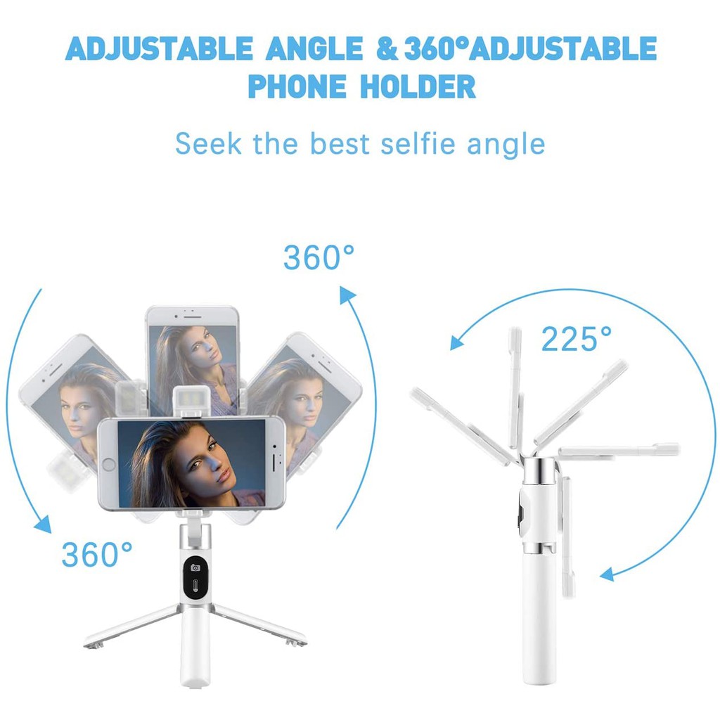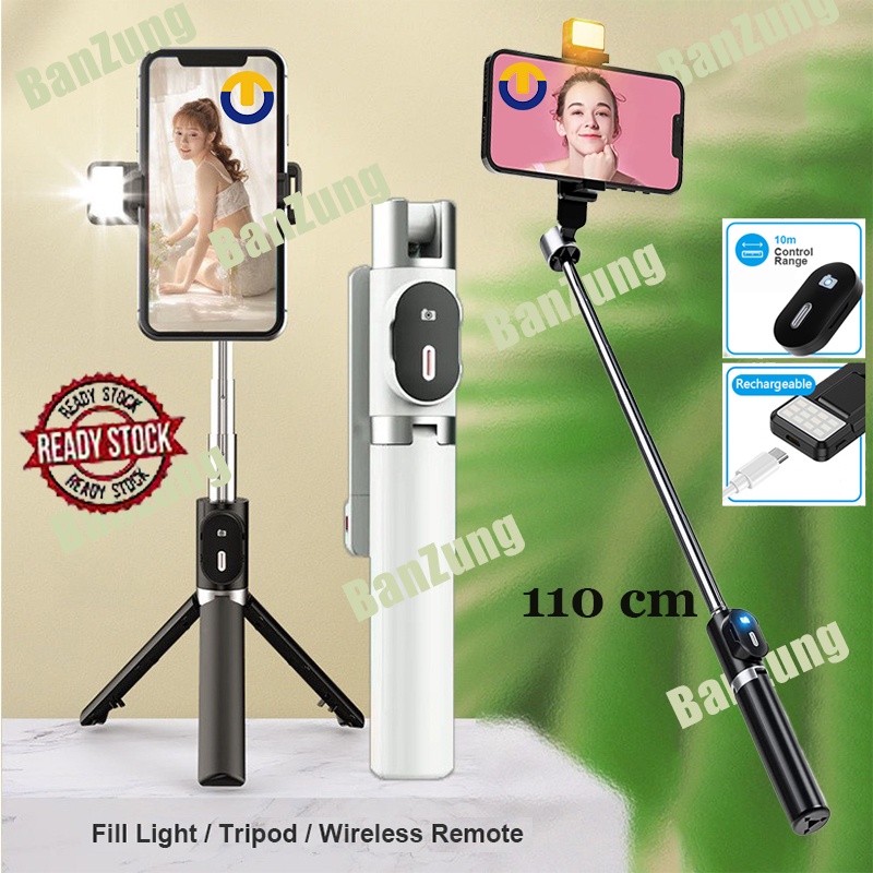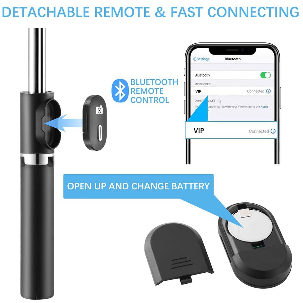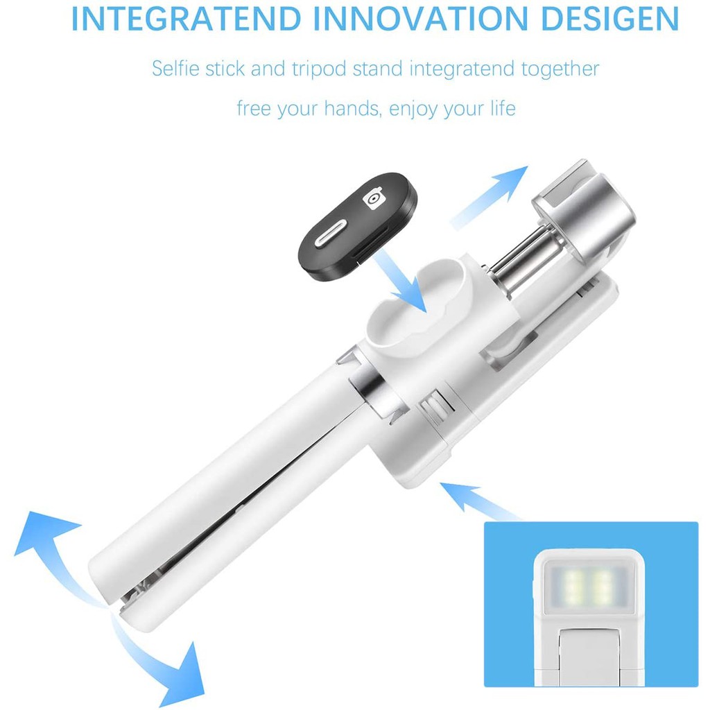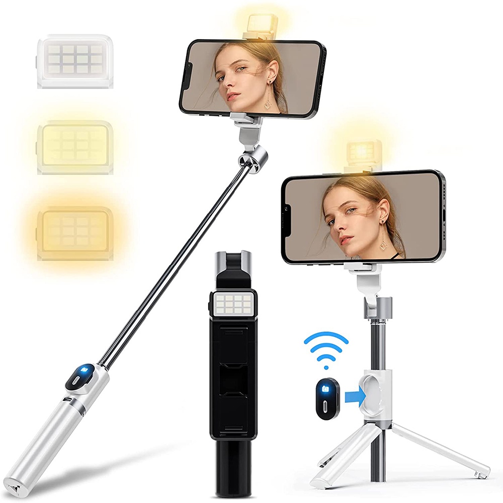 Selfie Stick w Fill Light Extendable Wireless Bluetooth Detachable Remote Control Tripod Monopod