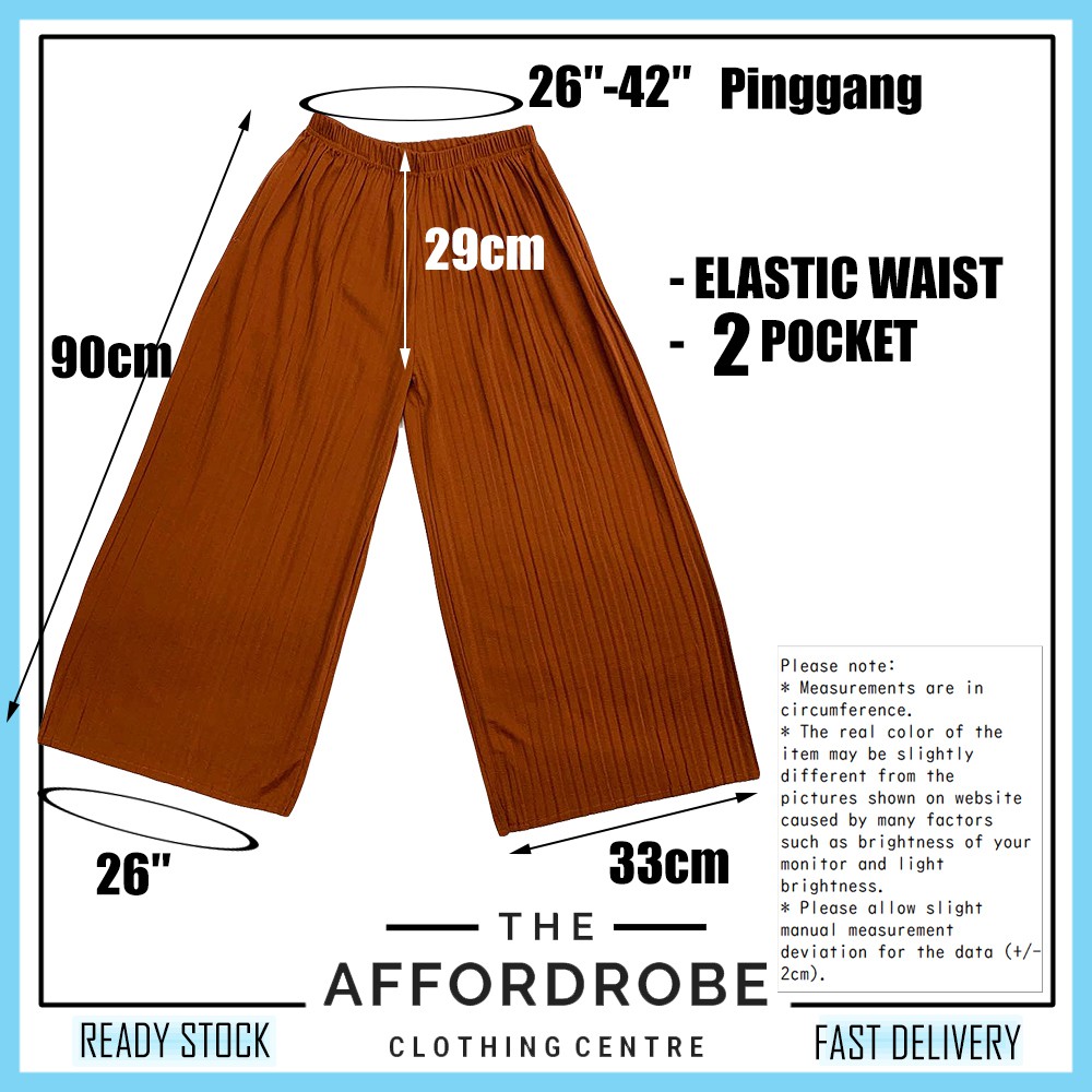 Seluar Palazo Panjang 2 Pocket Korean Pinggang Getah Labuh Kaki Lebar Fashion/Palazzo Long Pants Wide Ruffles Pleated