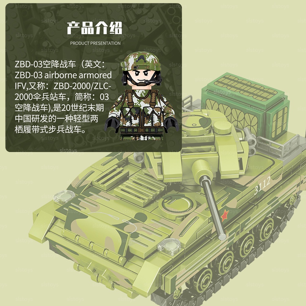 Sembo Block ZBD-03 Airborne Armored IFV Battle Tank Military Army Vehicle Building Brick Boy Toy