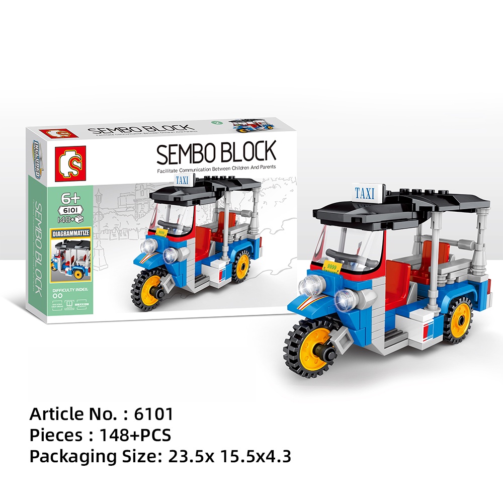 Sembo Thailand Vehicle Transportation Series Block Street View Building Bricks Car Bus Tuk-Tuks Taxi Collection