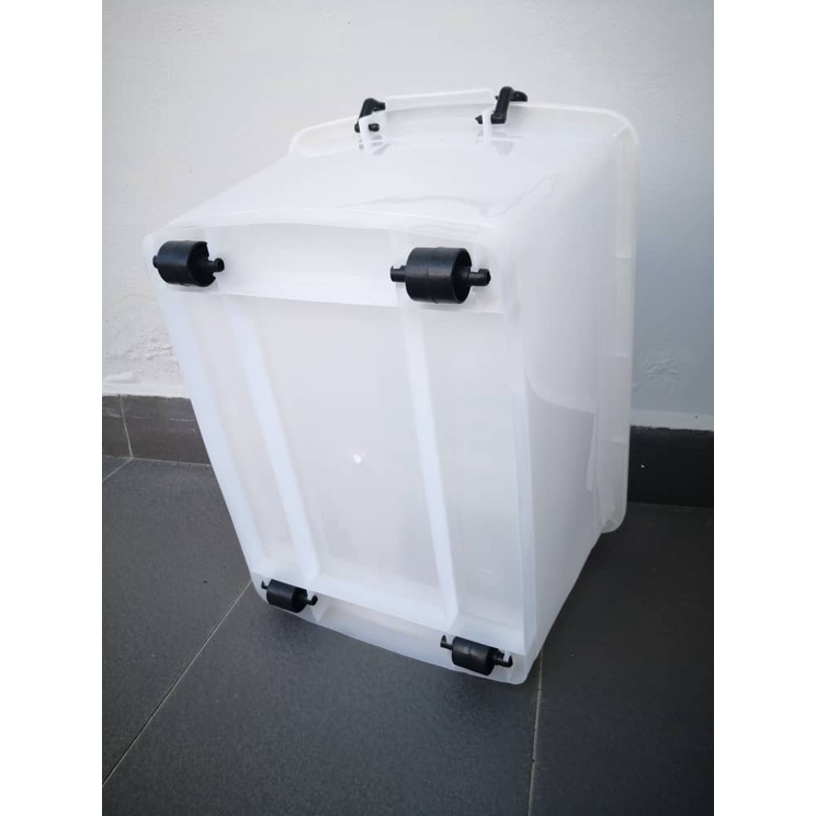 Semi Transparent Plastic Storage Box 25L Big Capacity Stackable Storage Organizer With Wheels Multi Purpose Storage Box