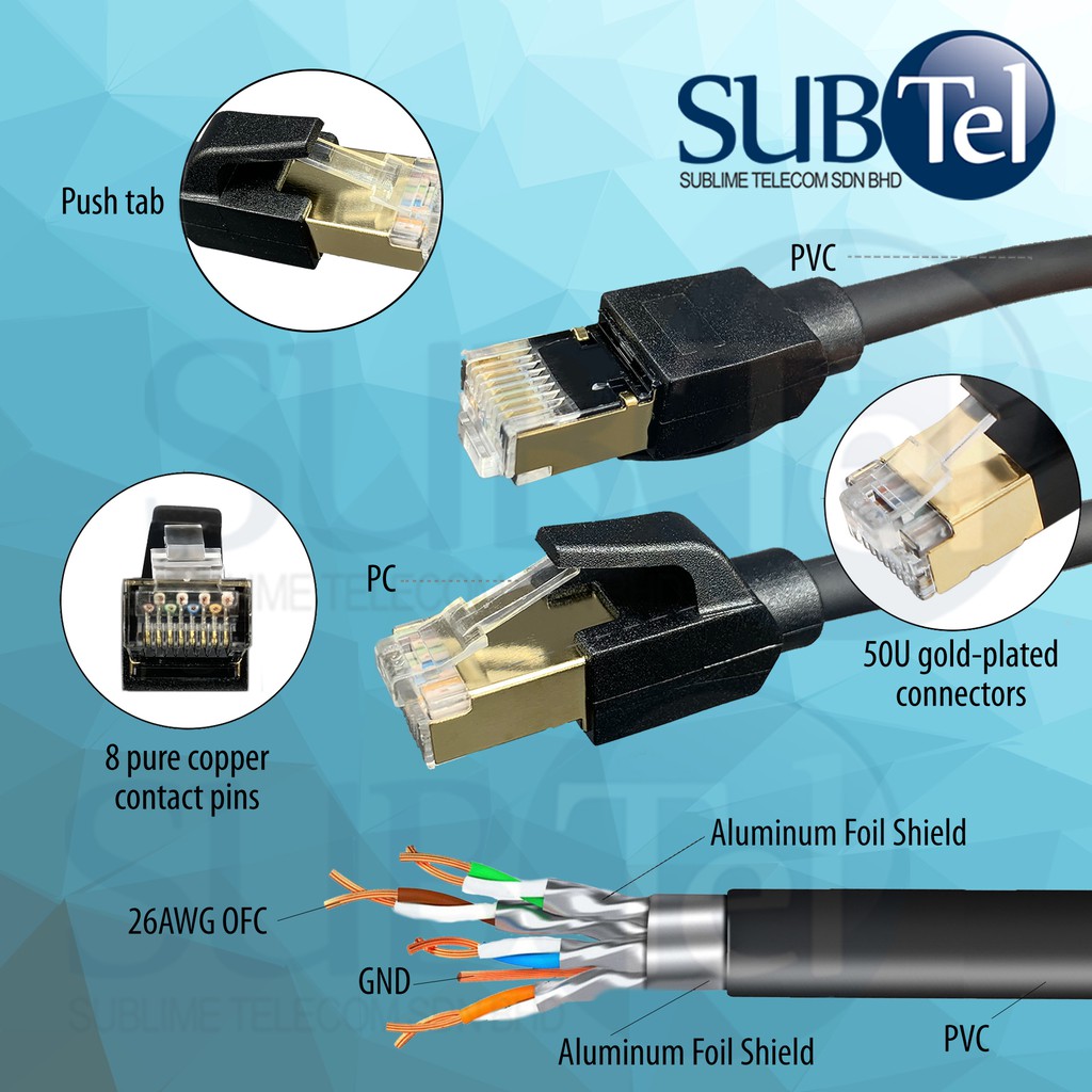 SenTec CAT8 RJ45 Patch Cord LAN Cable Gigabit Ethernet Cable 40G 30AWG SFTP Shielded UTP 40Gbps 10M 20M 50M