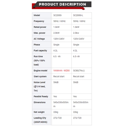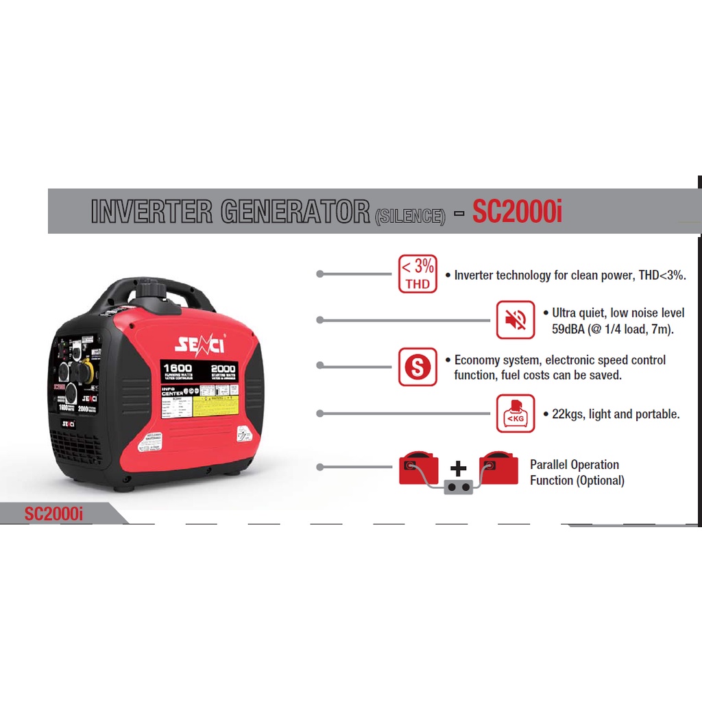 Senci SC-2000i / 2000iL Inverter Gasoline Generator 2Kva (4 Stroke ) Portable GenSet