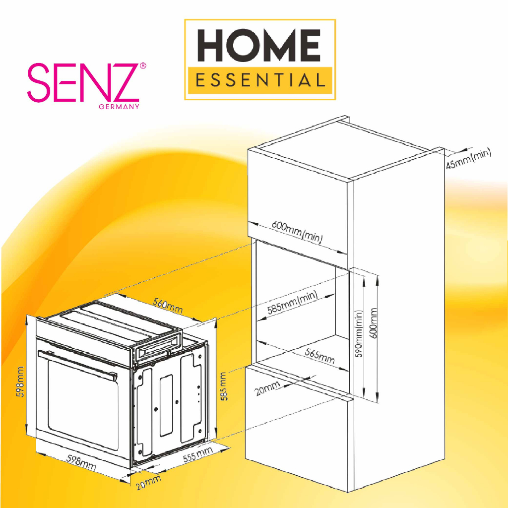Senz 75L Built in Oven 14 Functions SZ-OV7514-14F | 12 Functions SZ-OV7512-12F | Fully Digital Multi Oven