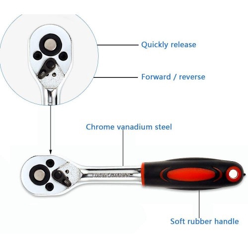Sepana Spanar Pemutar Skru Screwdriver Soket 46pcs Set Ratchet Socket Spanner Wrench Car Repair Torque Tool Box Toolbox