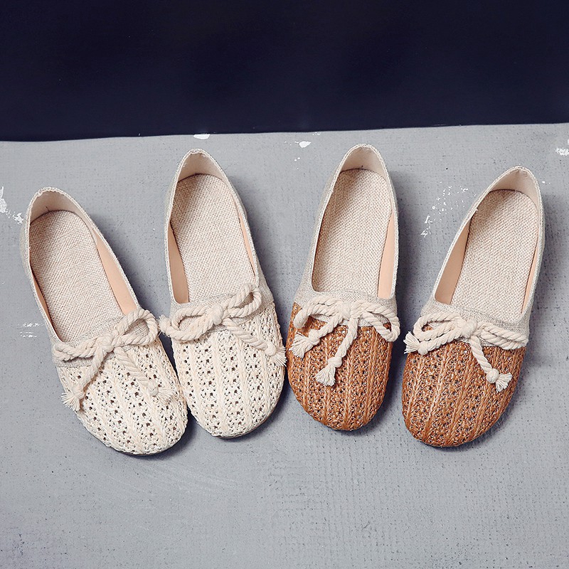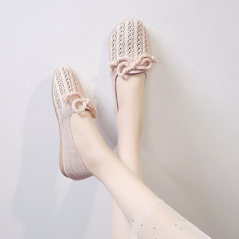 Sepatu Slip-On Wanita Model Korea Casual Flat Woven Breathable untuk Musim Panas