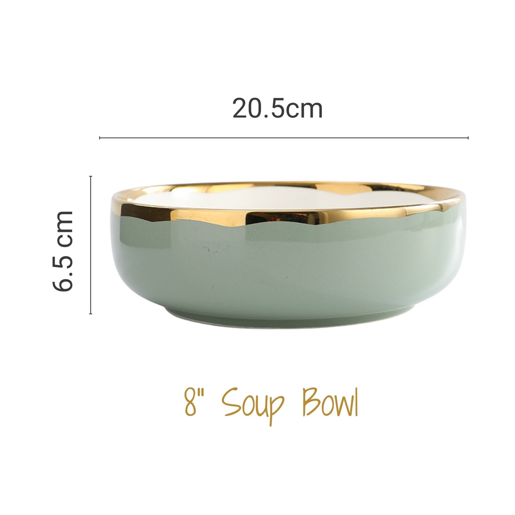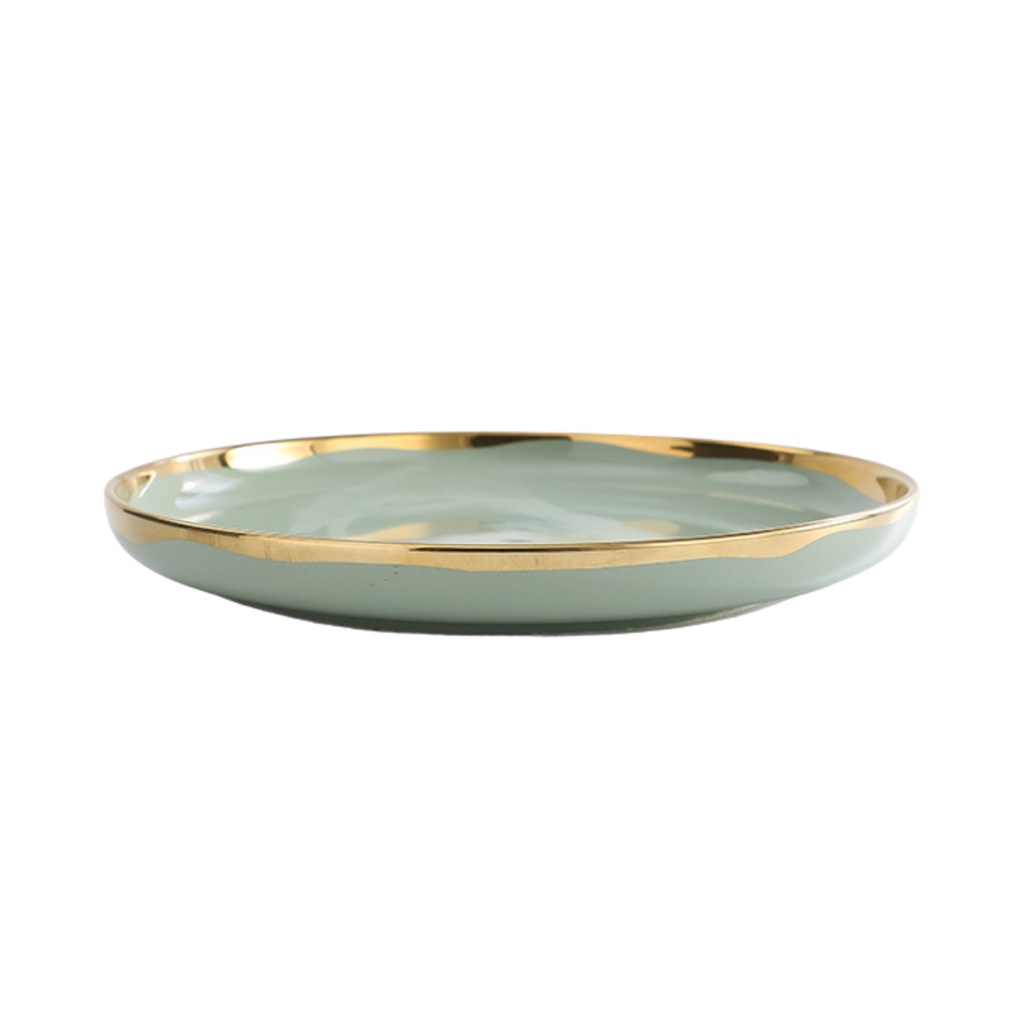 Seralle Light Green Nordic Ceramic Dinnerware Set Gold Rim Tableware Light Green Dinner Plate Light Green Ceramic Bowl