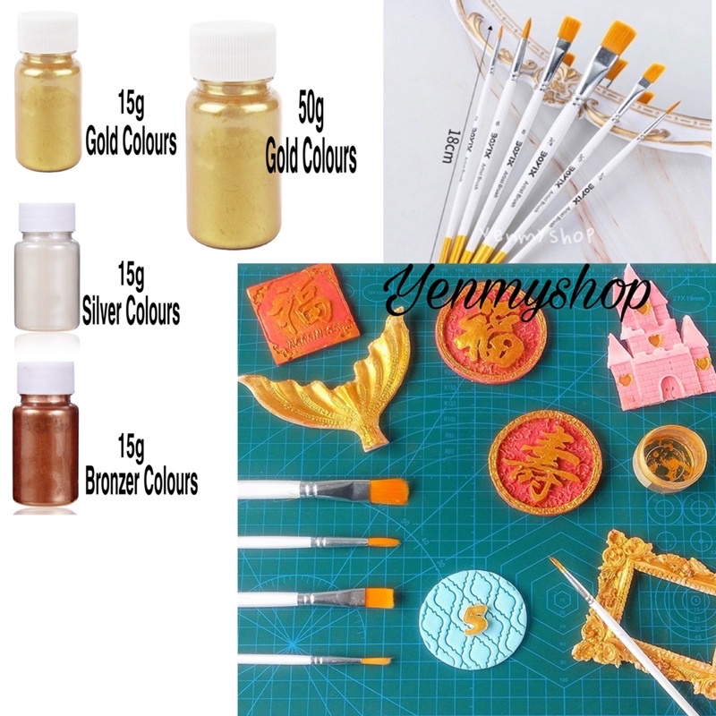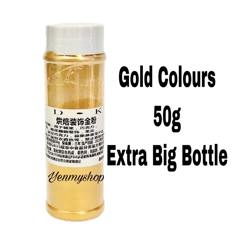 Serbuk 15g Edible Metallic Gold Powder Dust for Cake, Pastry, Cake, Dessert (50g Extra Big Bottle)