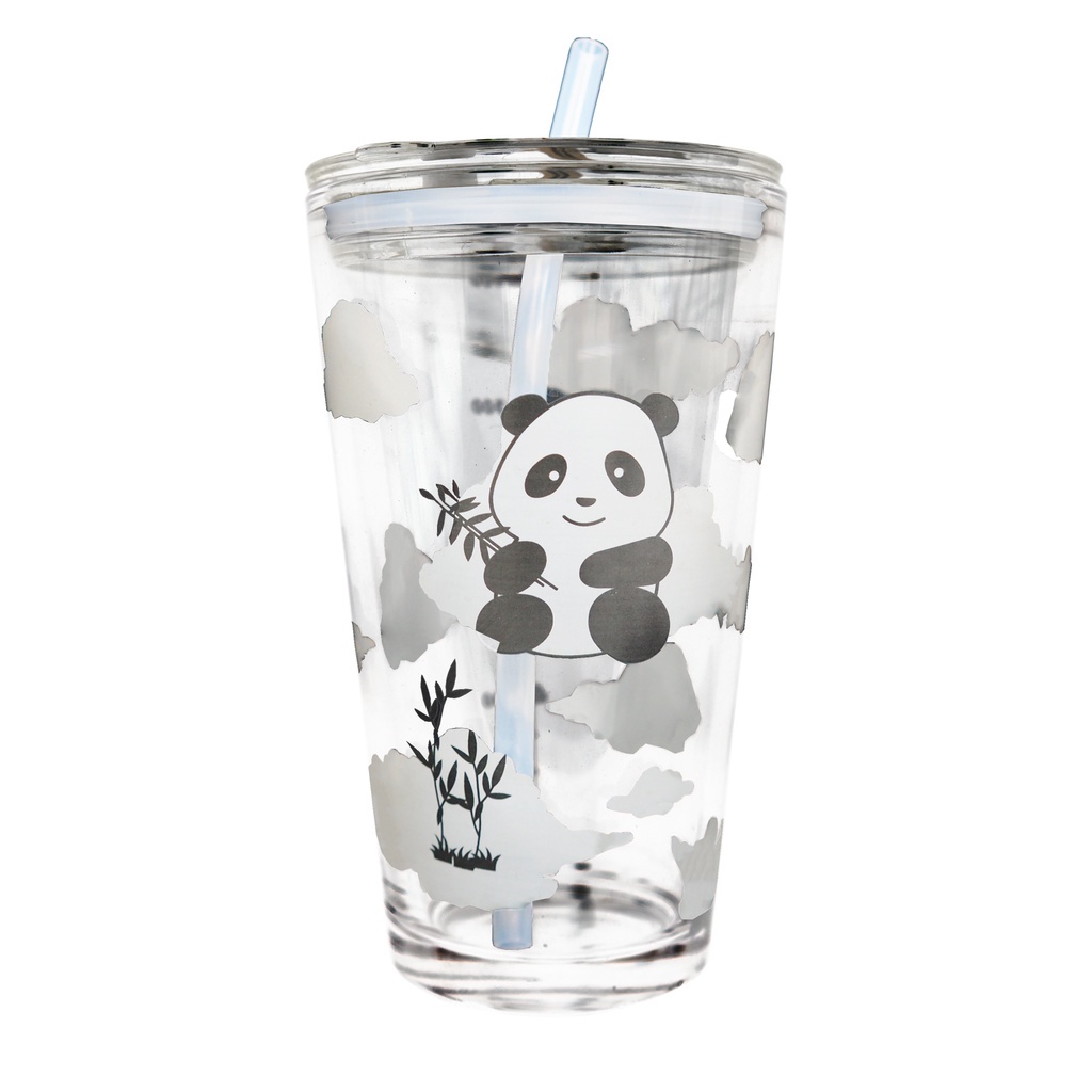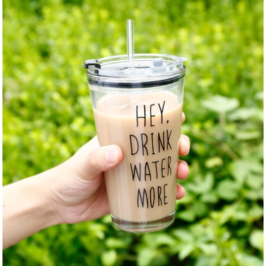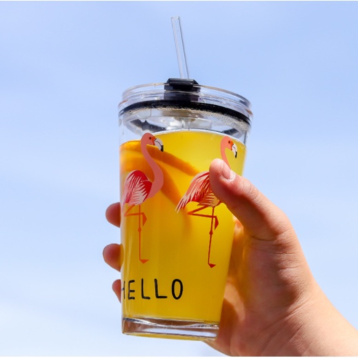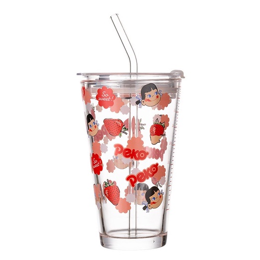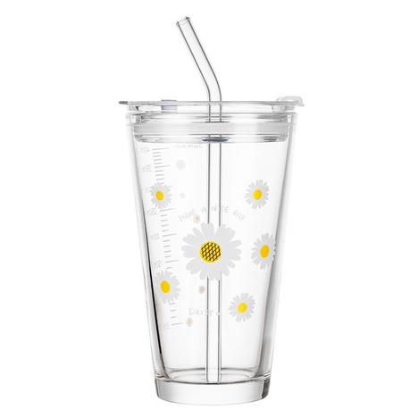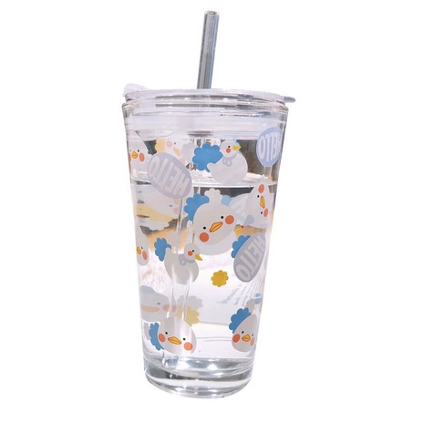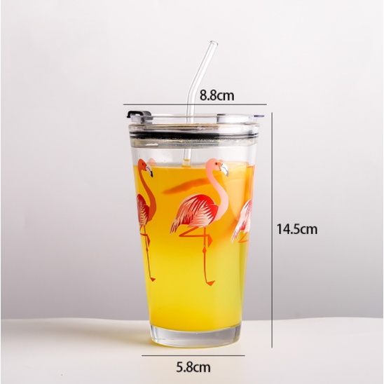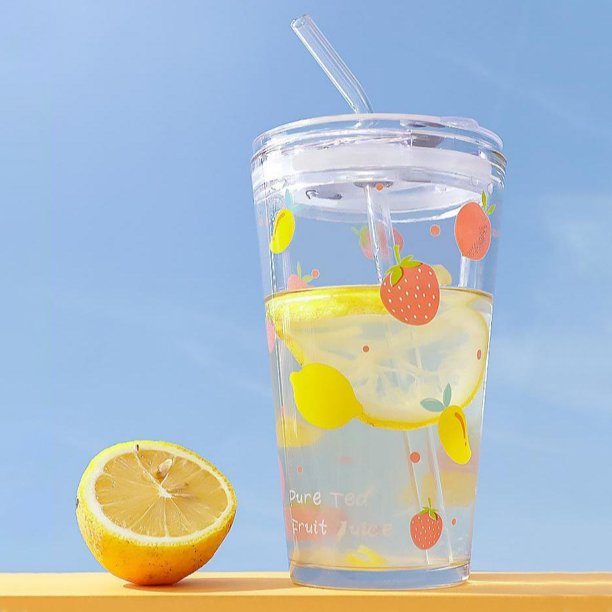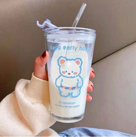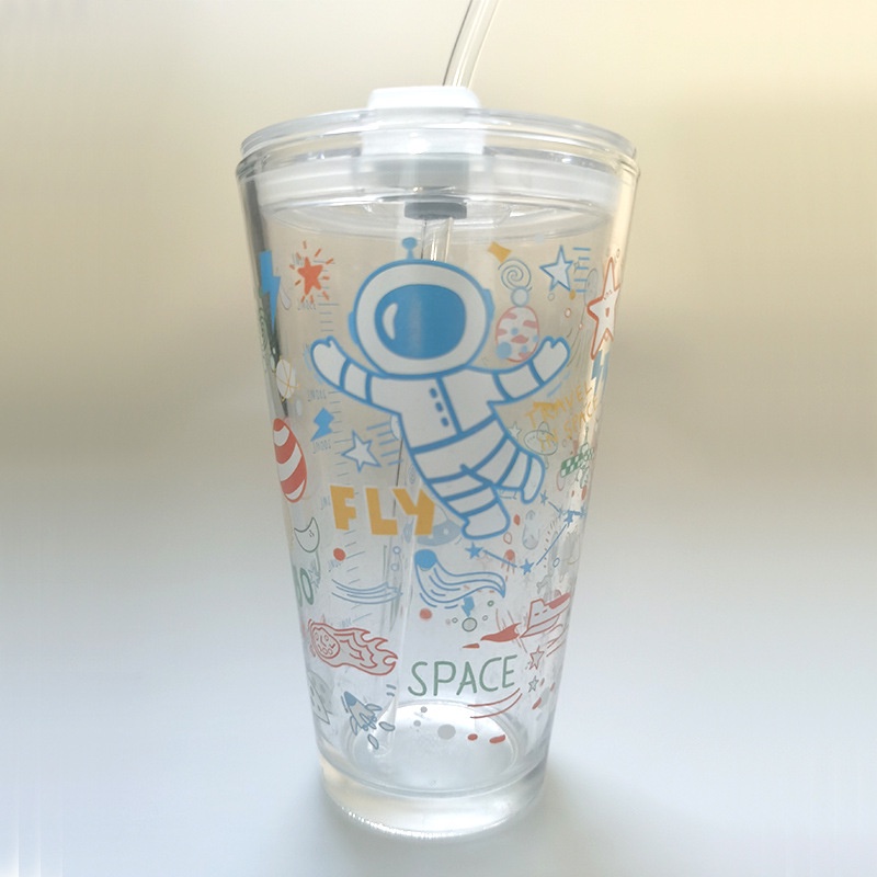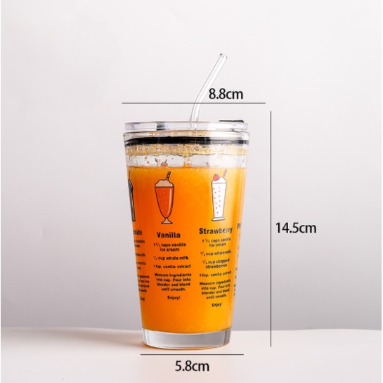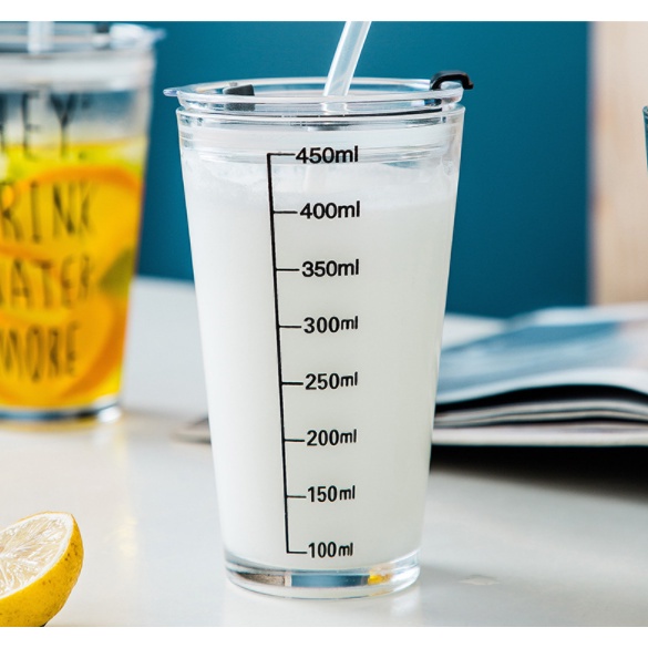450ML Glass Cup | Juice Straw Mug with Scale Transparent Graffiti Style Kid Gift Portable Milk Drink Water Bottle