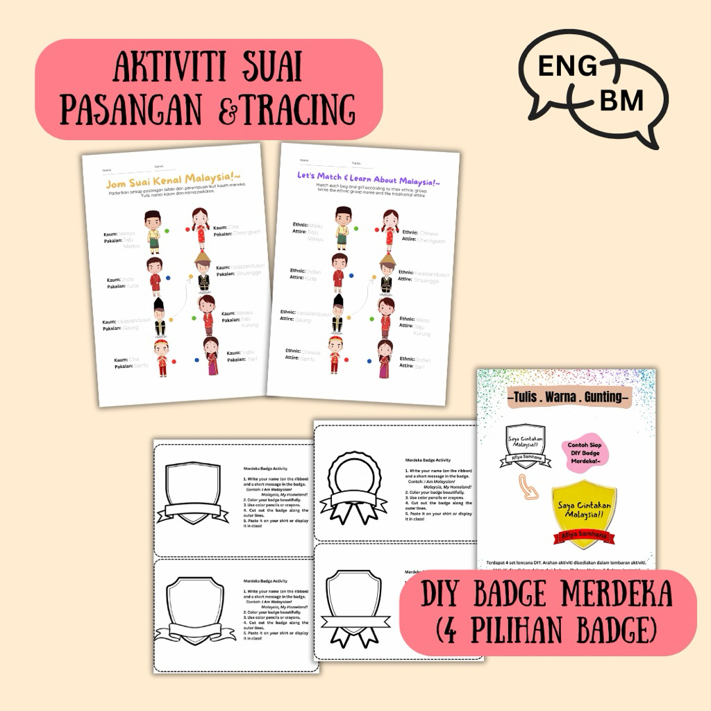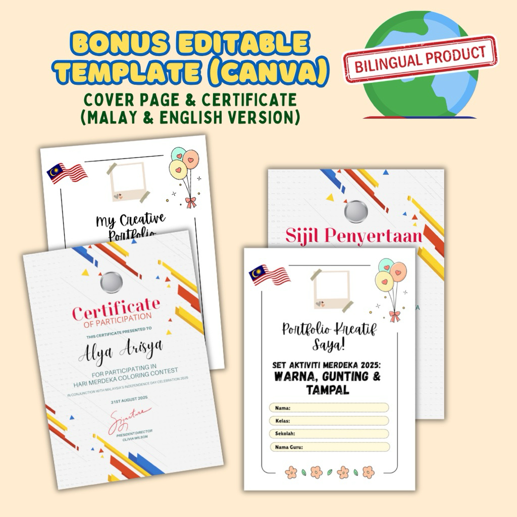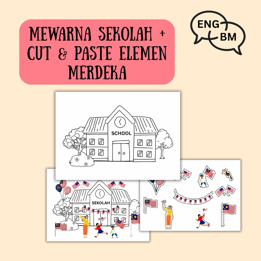 [PDF] Activiti Merdeka (Pra & Tahap 1) Lebih 40 Pages Dwibahasa | Mewarna, Gunting & Tampal. Editable Cover & Sijil