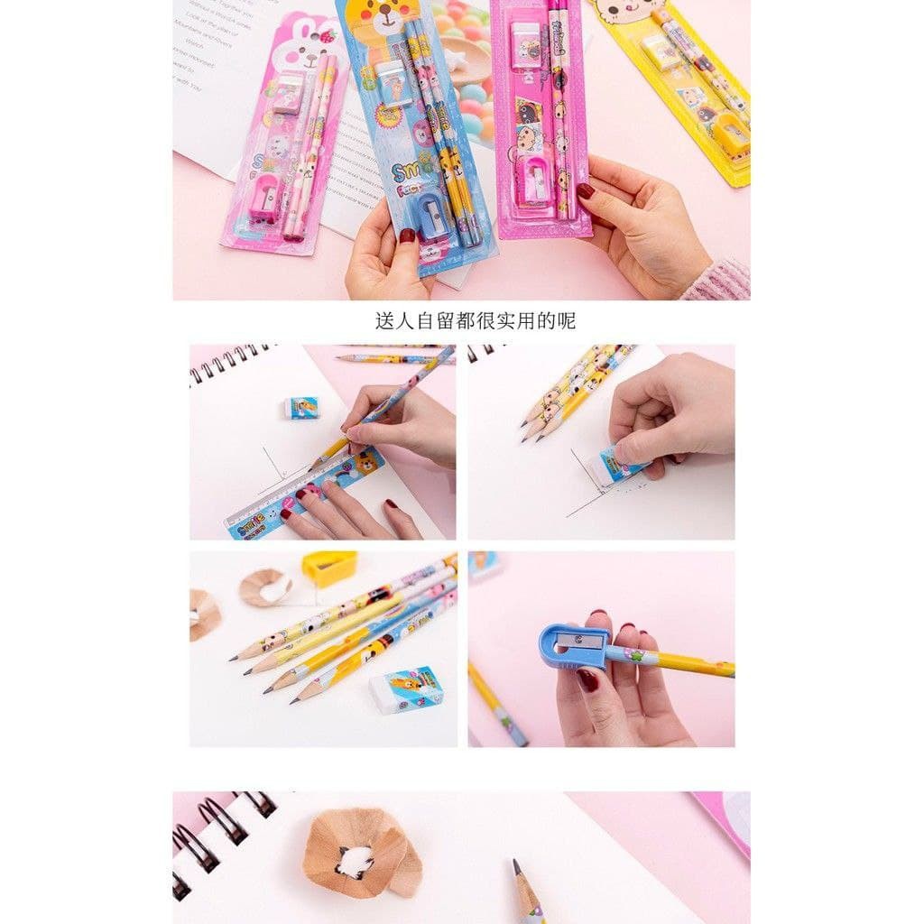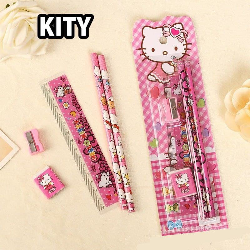Set Alat Tulis Stationery School Gift Pack Children Kids Pencil Cartoon Stationery 5 Piece Hadiah Cenderahati Sekolah