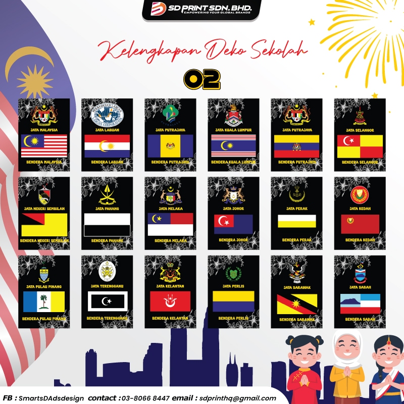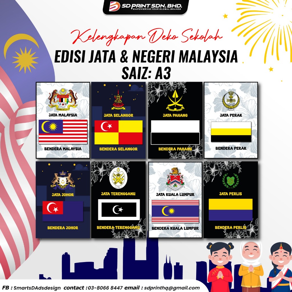 Set BENDERA / FLAG & JATA NEGERI MALAYSIA (18 ITEMS) - HIASAN MERDEKA / PATRIOTIK