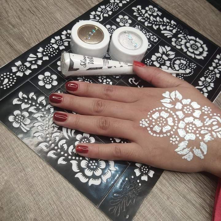 Set Combo Inai Lukis Putih , Glitter . Inai Lukis Putih Pengantin Viral Murah Cantik