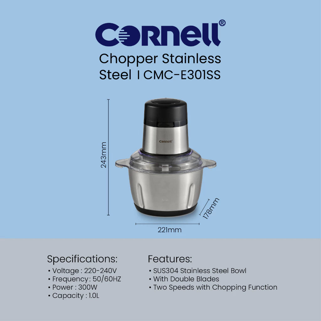 Cornell 1000ml Stainless Steel Chopper | CMC-E301SS Food Processor Mixer Blender Grinder Garlic