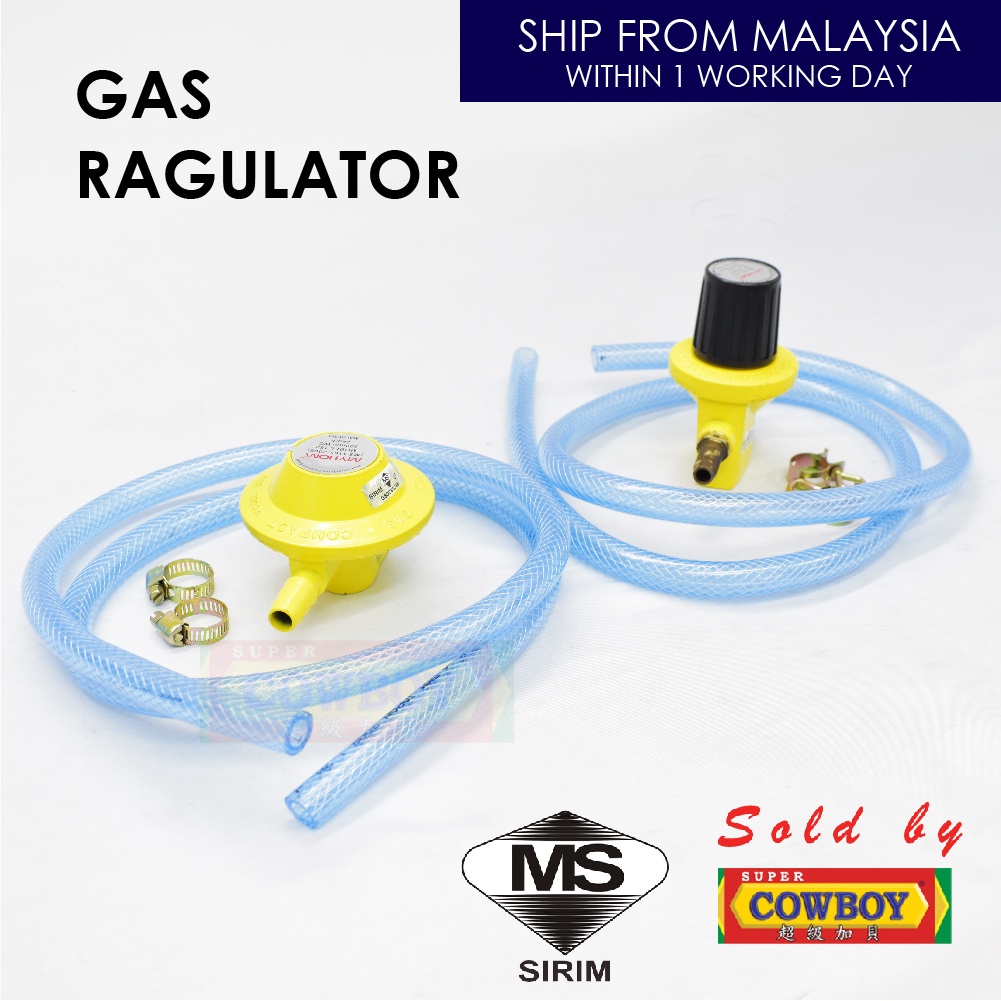 Set Low High Pressure Gas Regulator with Hose 1.5m with Clips Safety Regulator Kepala Gas Tekanan Rendah Tinggi Sirim
