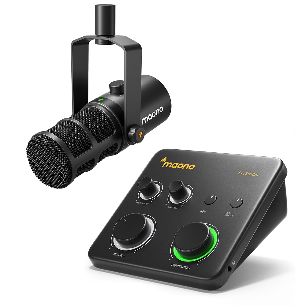 Set Mikrofon Dinamik Kad Bunyi PC Maono PS22-Lite+PD400X Antaramuka Audio dengan Input XLR, Perisian Penghalaan, Pemacu ASIO untuk Rakaman Muzik, Studio Rumah, Podcasting, Penstriman, DAW