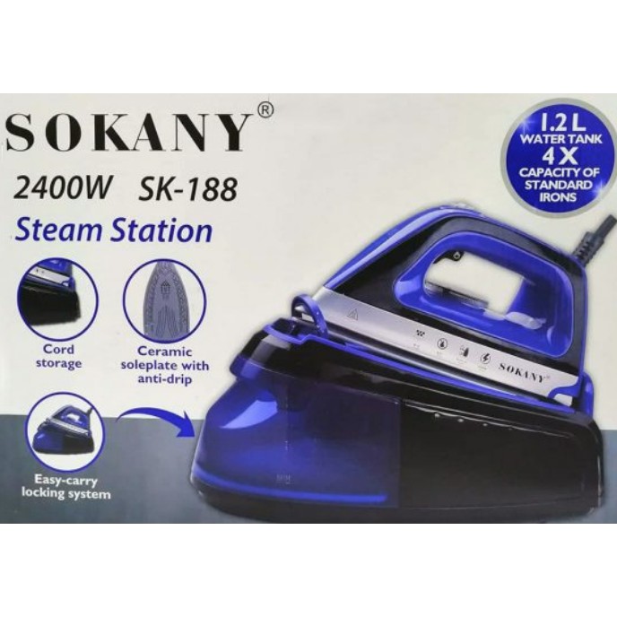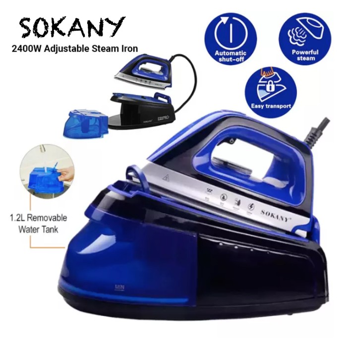 SOKANY 2400 Watt Steam Iron Seterika Stimer with 1.2L Water Tank