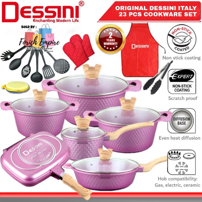 Set Periuk Original Dessini Italy 23pcs Casserole Model: RB-23-S Non Stick Cookware Set