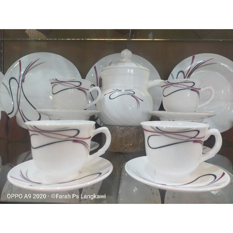 Set Pinggan Makan/Dinner Set 33 pcs(Red Black Spiral)
