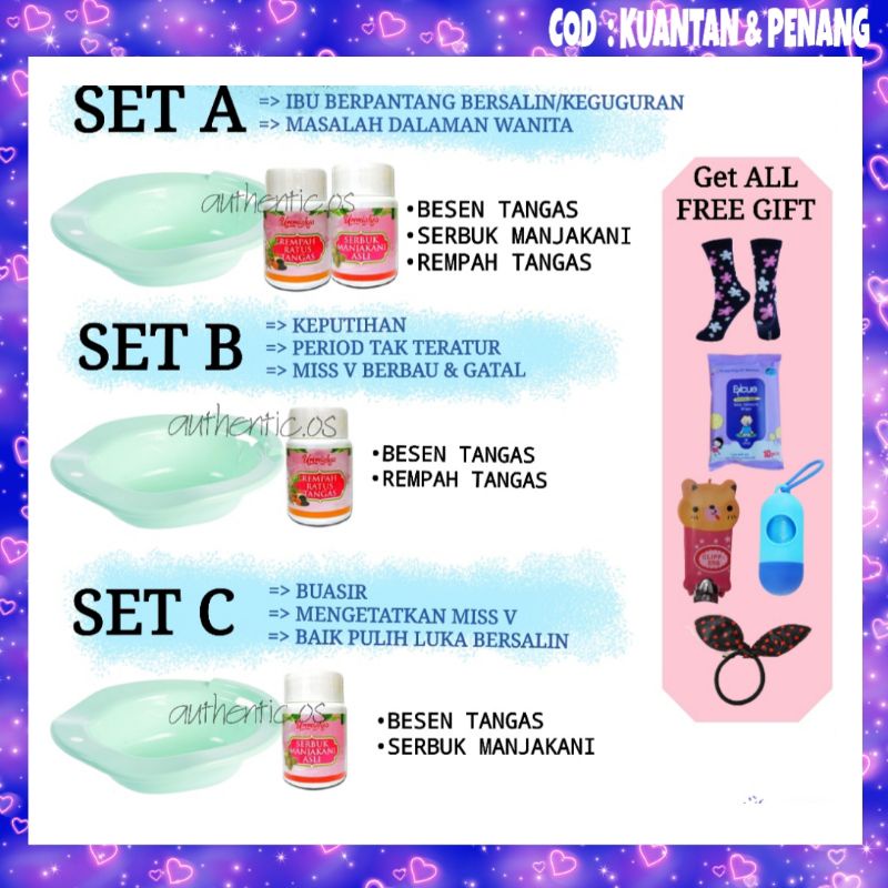 UMMIALYA Sitz Bath Basin Besen Set Tangas Herba Miss V Rendaman Faraj Berpantang Serbuk Manjakani Garam Bukit Keputihan