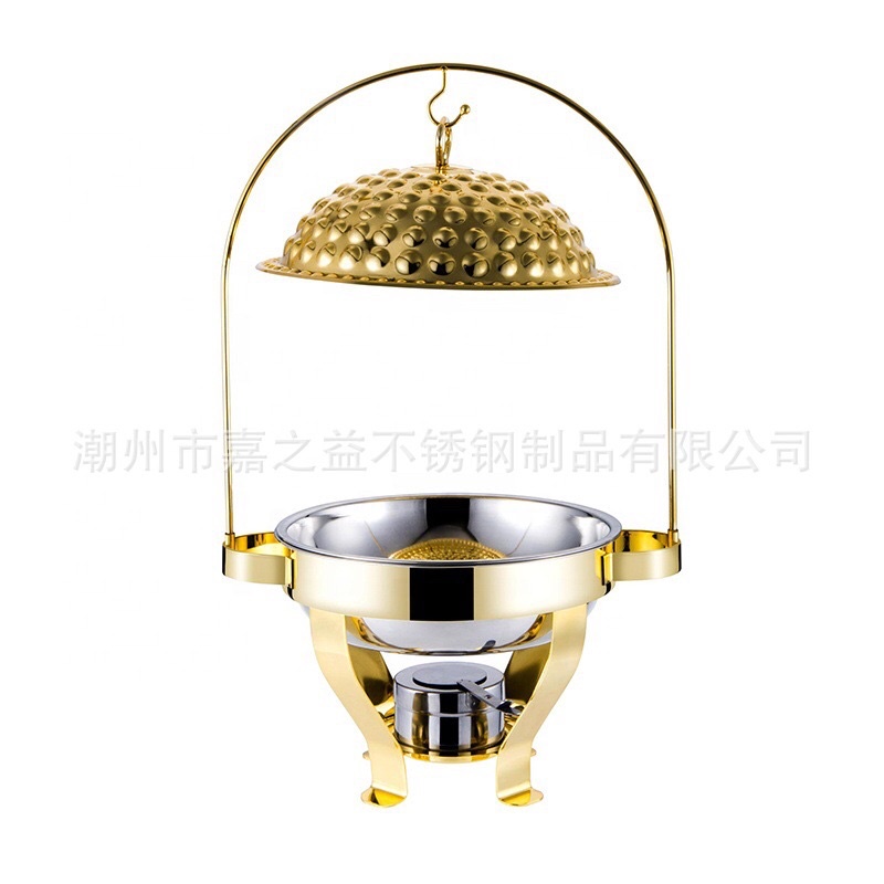 Set buffet Mewah 4.5liter Cover Hanged Chafer Hanging Chafing Dish Crown Saudi Arabic Food Warmer Gold Silver