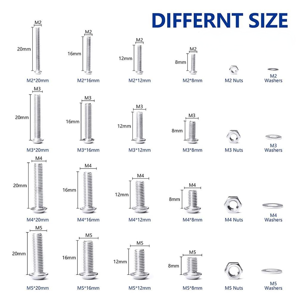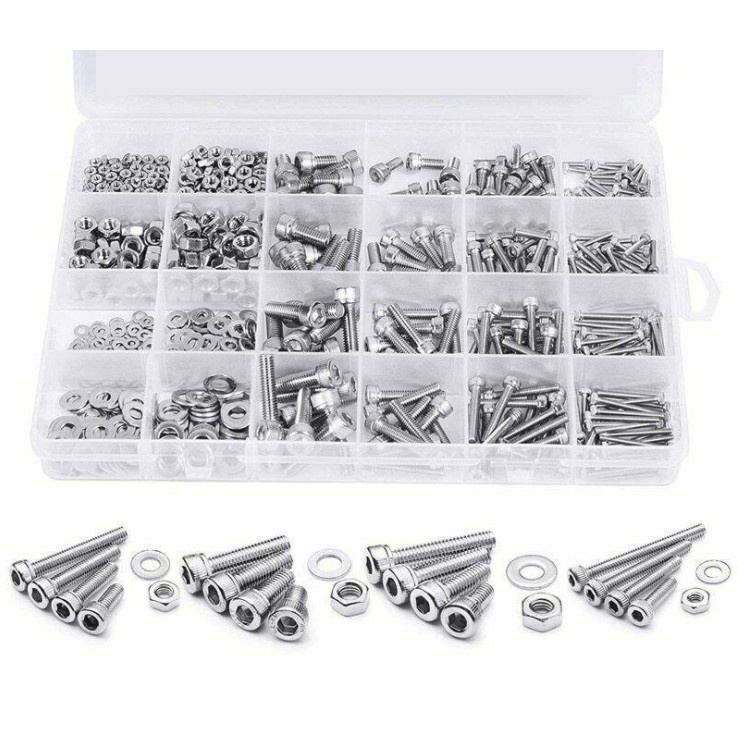 Set of 1080 Socket Head Cap Screws 304 Stainless Steel Hex Flat Head Screw Set Assortment with 3 Hex Keys and 1 Tweezers