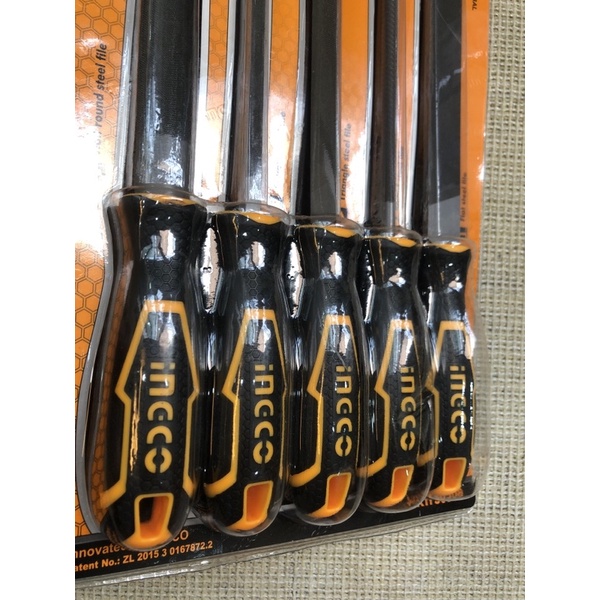 Set of 5 iron files made of T12 steel INGCO HKTFS0508 length 8" (200mm) Round, Semicircle, Triangle, Square Flat