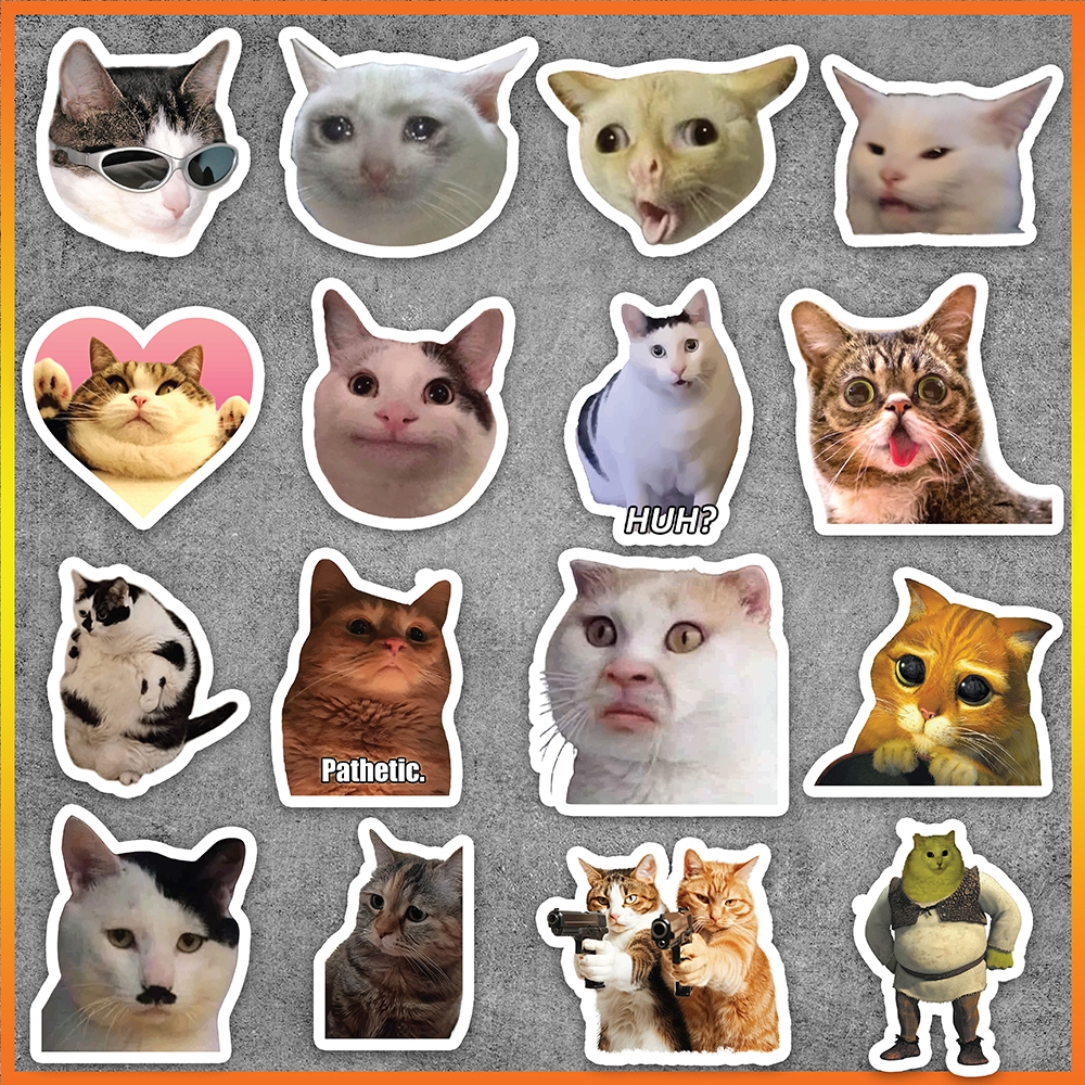 Set of 50 Cat Meme Stickers, Waterproof Cat Meme Stickers, Dog and Cat Stickers for helmets, laptops, car stickers, suitcases...