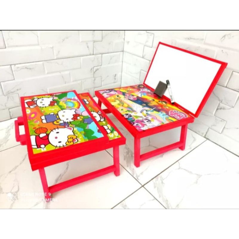 Study table set plus children's whiteboard free marker and eraser can be folded/ folding study table/ character study table children's folding study table/ study table white board meja belajar lipat