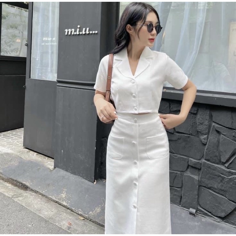 Set of white office dress with vest collar (with real pictures)