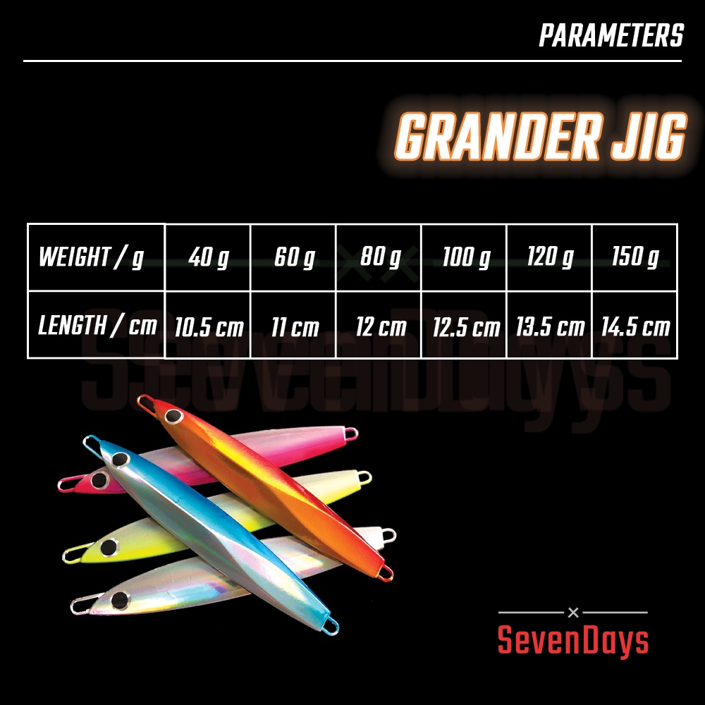 Sevendays Grander Jig 40g/60g/80g/100g/120g/150g Light Shiny Fishing Lure Bekalan Pancing Fast Slow Jigging Sea Laut