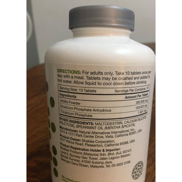 Shaklee Alfalfa Complex - 700 Tablets ( Alfalfa & Calcium)
