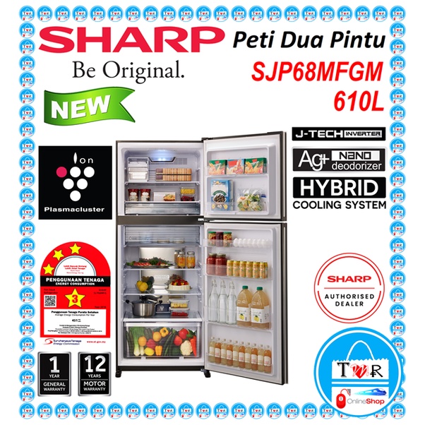 Sharp 610L Two Door Inverter Fridge ( Glass M - Maroon )