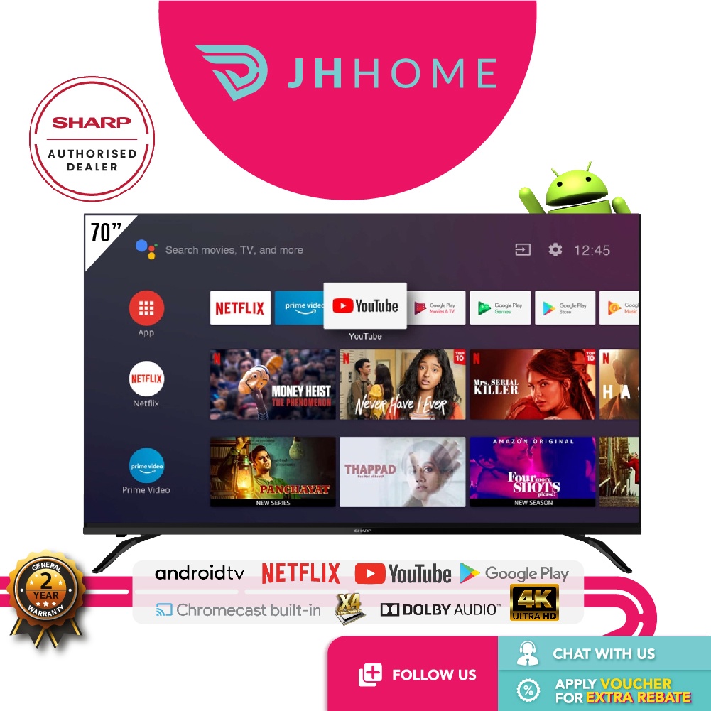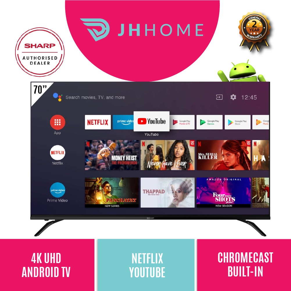 Sharp 70 Inch 4K UHD AQUOS Android TV 4TC70DK1X | 4TC70BK1X | Google Playstore | Google Assistant | Netflix | Youtube