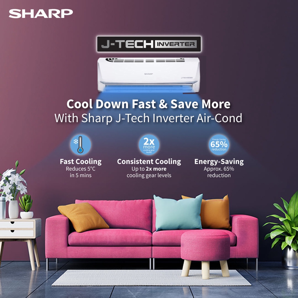 Sharp Inverter J-Tech Air Conditioner R32 (1.0 HP) AHX9VED2 AHX9AED