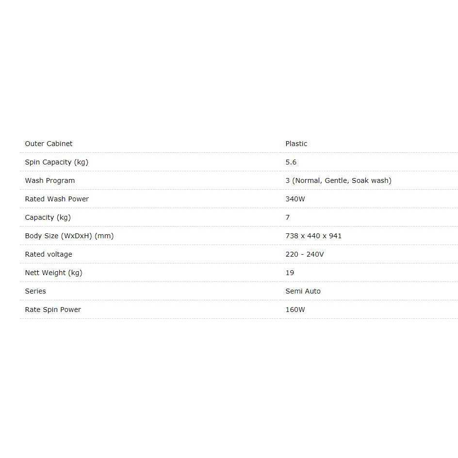 Sharp Semi Auto Washing Machine (7kg) EST7015
