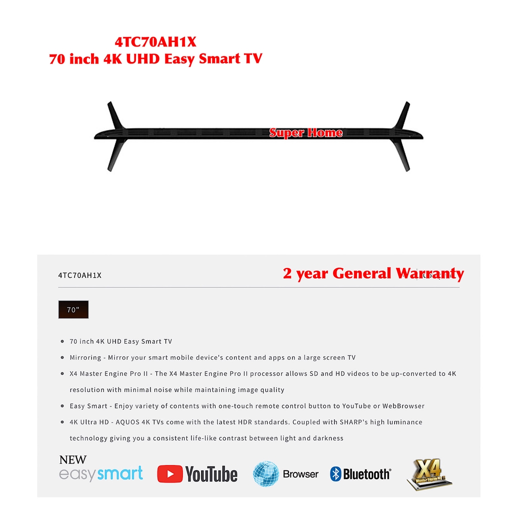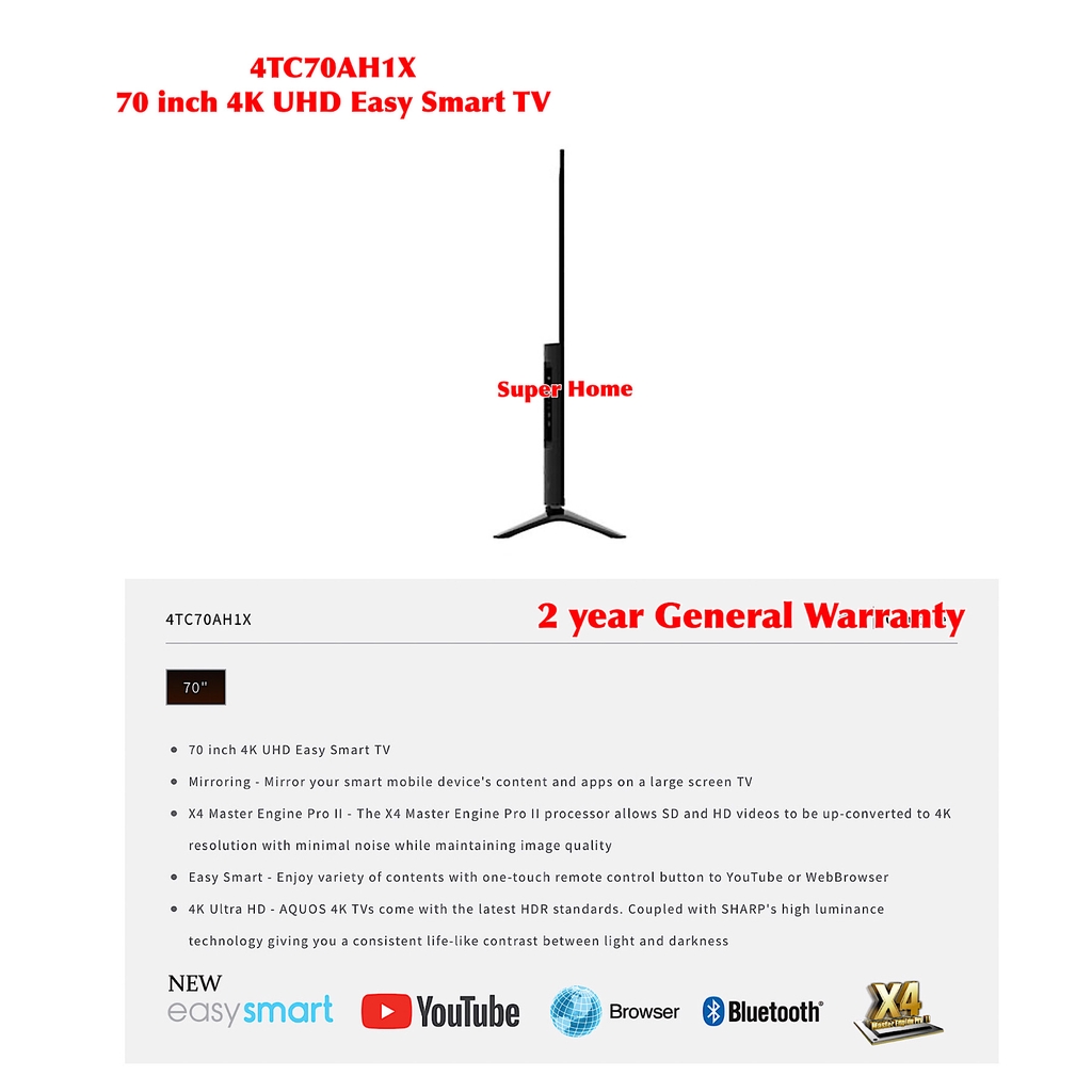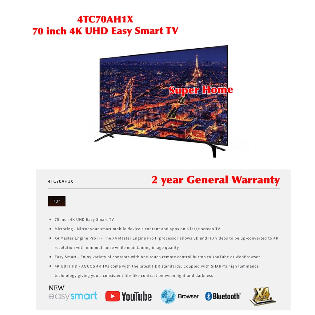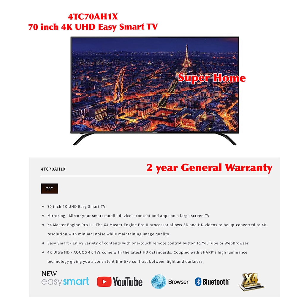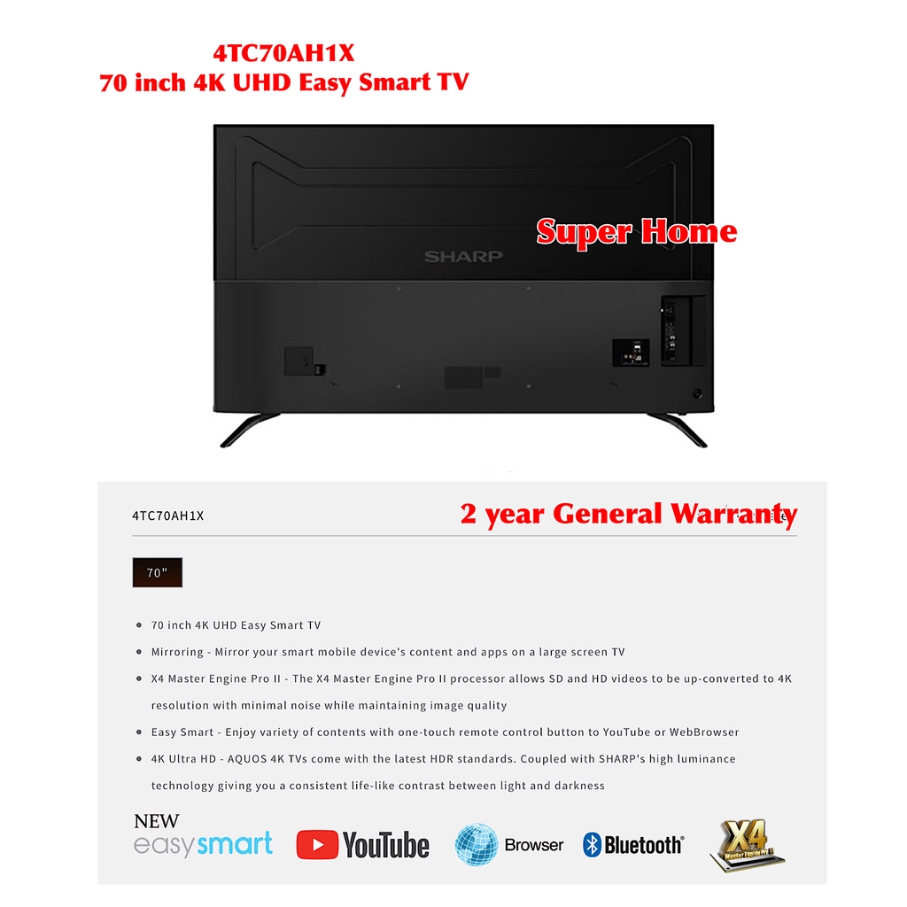 Sharp Smart TV AQUOS 70 inches Ultra HD 4K Smart LED TV 4TC70AH1X Sharp Smart TV (only Klang Valley)