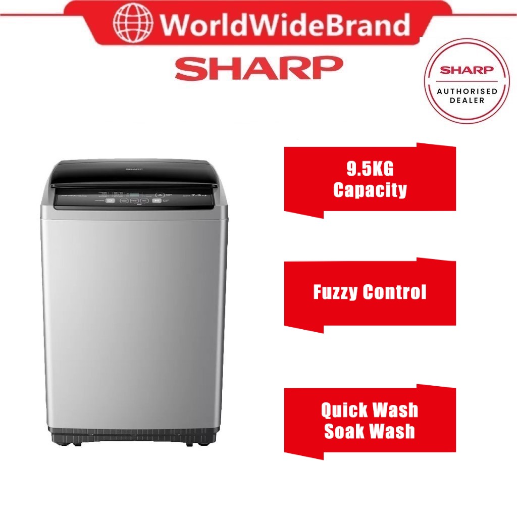Sharp Washing Machine (9.5KG) Fuzzy Control Fully Auto Top Load Washer ES921X With Power-Off Memory