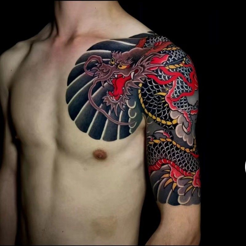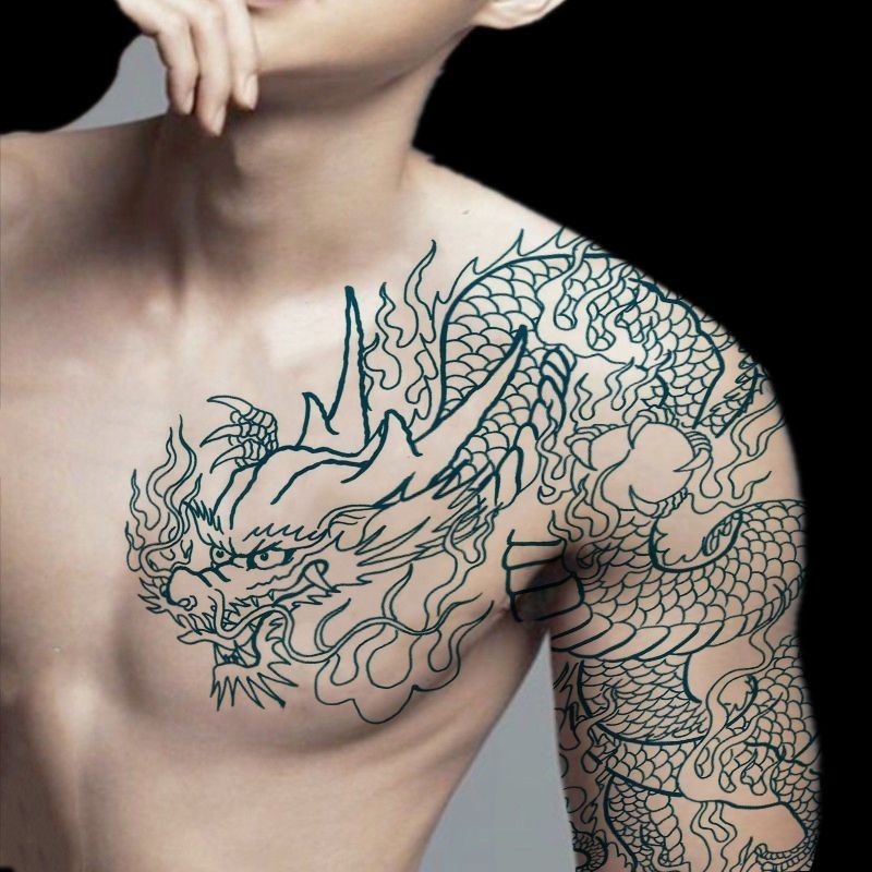 Shawl Dragon Half Armor Tattoo Sticker Line Dragon Waterproof Long-Lasting Simulation Tattoo Decal Arm Chest Male Female Dragon Realistic 4.262024