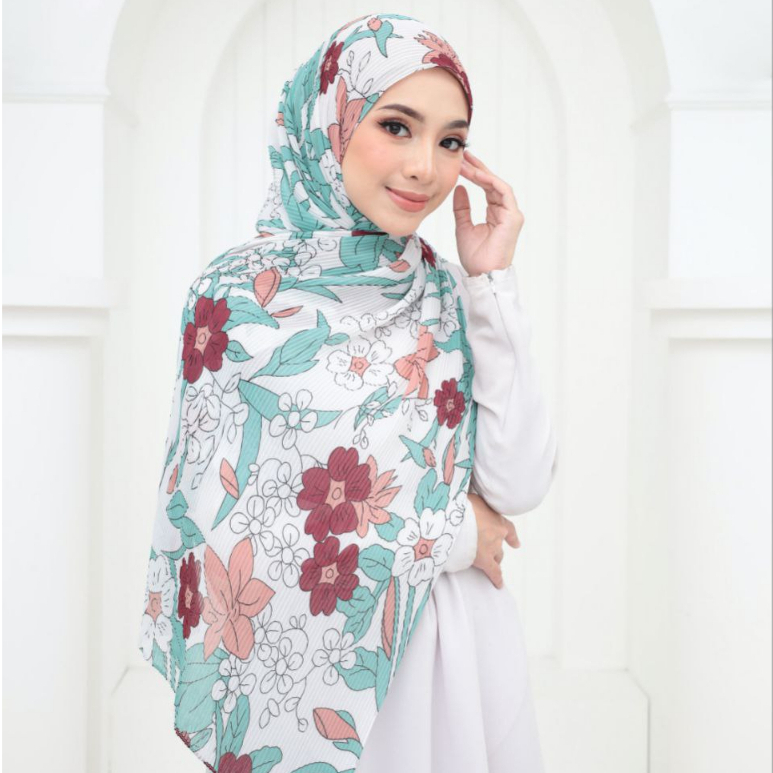 Shawl Pleated Halus Corak Printed Digital Premium