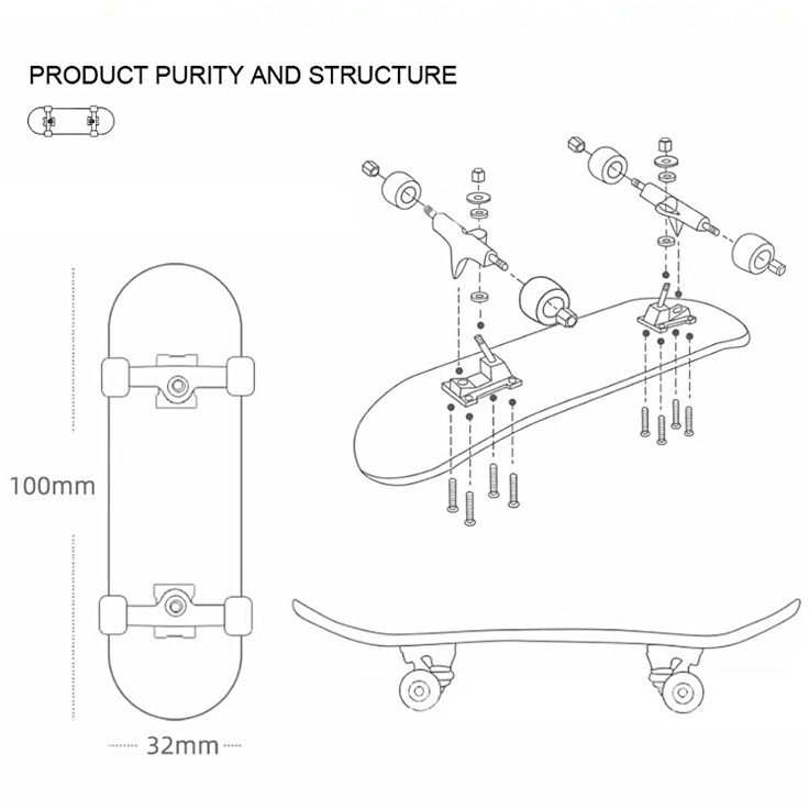 Shehave Wooden Mini Fingerboard, Professional Fingerboard Maple DIY Assembled Skateboard Toy