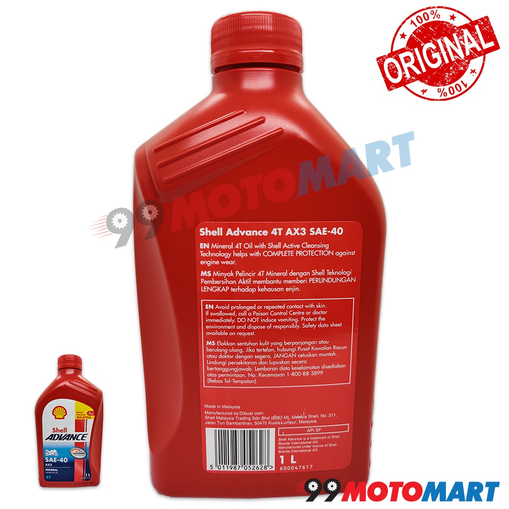 Shell 4T AX3 SAE 40 Engine Oil 20w40 1L Original Shell Mineral Oil 1L