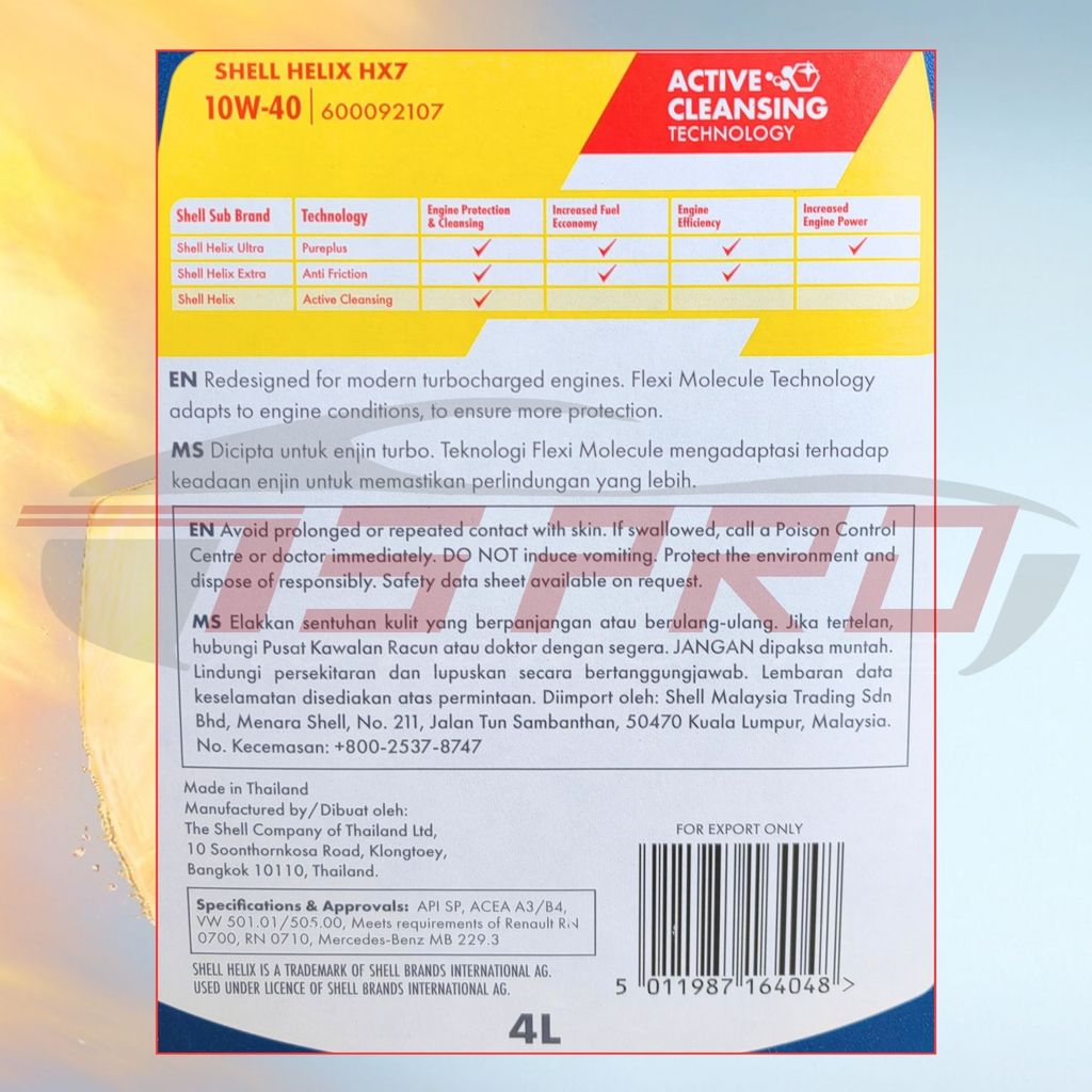 Shell HX7 10W-40 API SP, ACEA A3/B4 Engine Oil (4L) - Semi Synthetic + Free Mileage Sticker