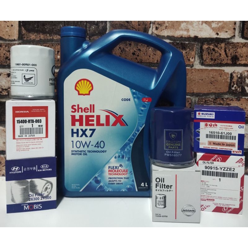 Shell Helix ULTRA 5W40 FULLY / HX7 10W-40 Semi Synthetic Engine Oil 4L imported + Oil Filter Set